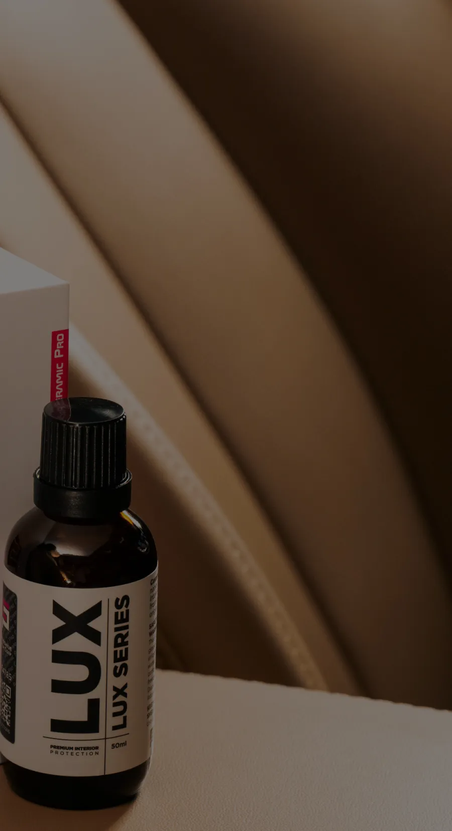 LUX Series creates an invisible nanoceramic barrier on leather that prevents contamination, provides chemical and UV resistance, protects against fading and decay, and adds a hydrophobic easy-to-clean effect — all while maintaining the original look and feel of the material.
